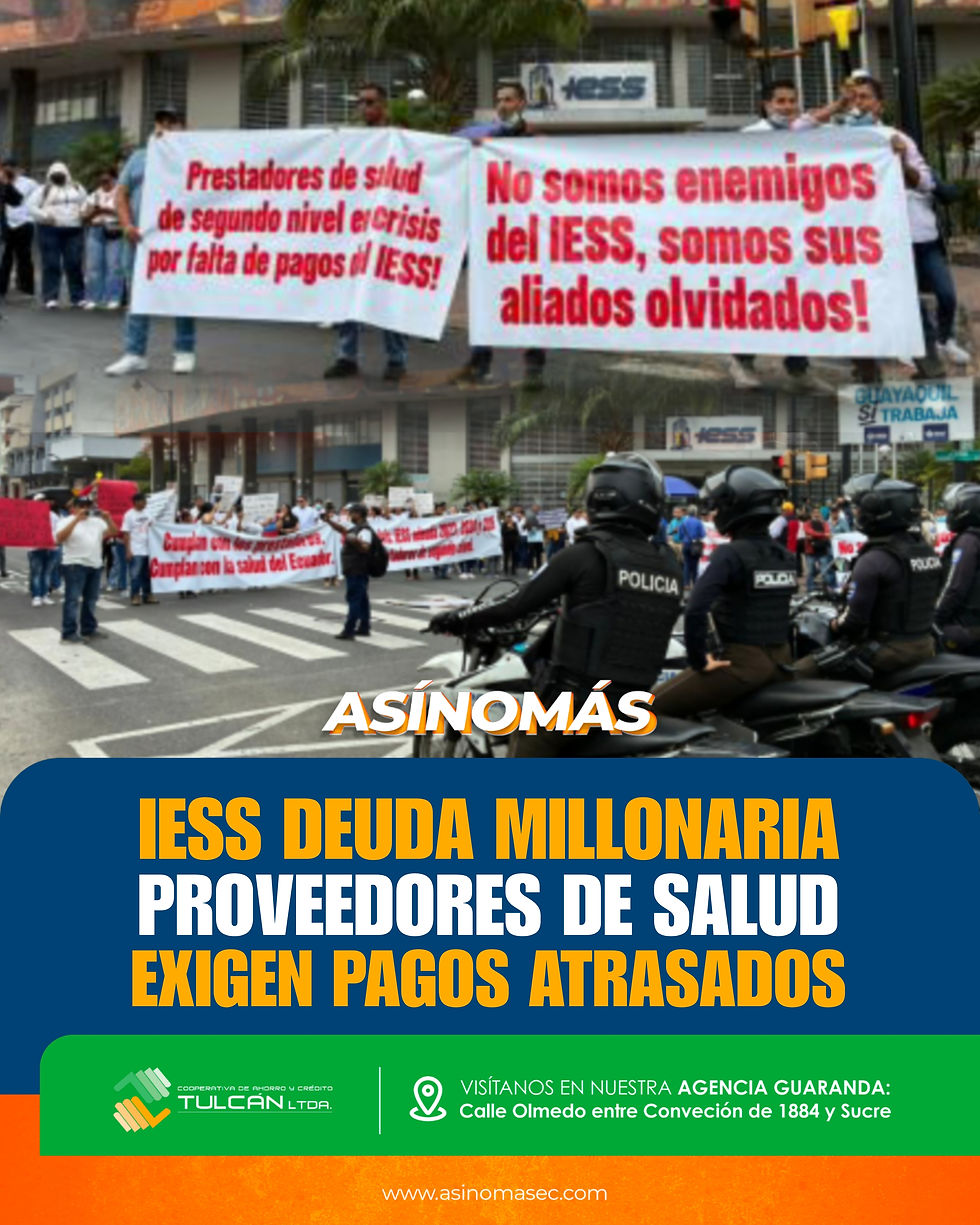 Los manifestantes forman parte de los 40 prestadores externos de salud de segundo nivel en Guayas, quienes denuncian que la falta de auditorías médicas durante todo el 2024 ha impedido la validación de facturas por servicios ya prestados, paralizando los pagos. Según los voceros, el incumplimiento pone en riesgo la atención de más de cuatro millones de afiliados y jubilados en el país.